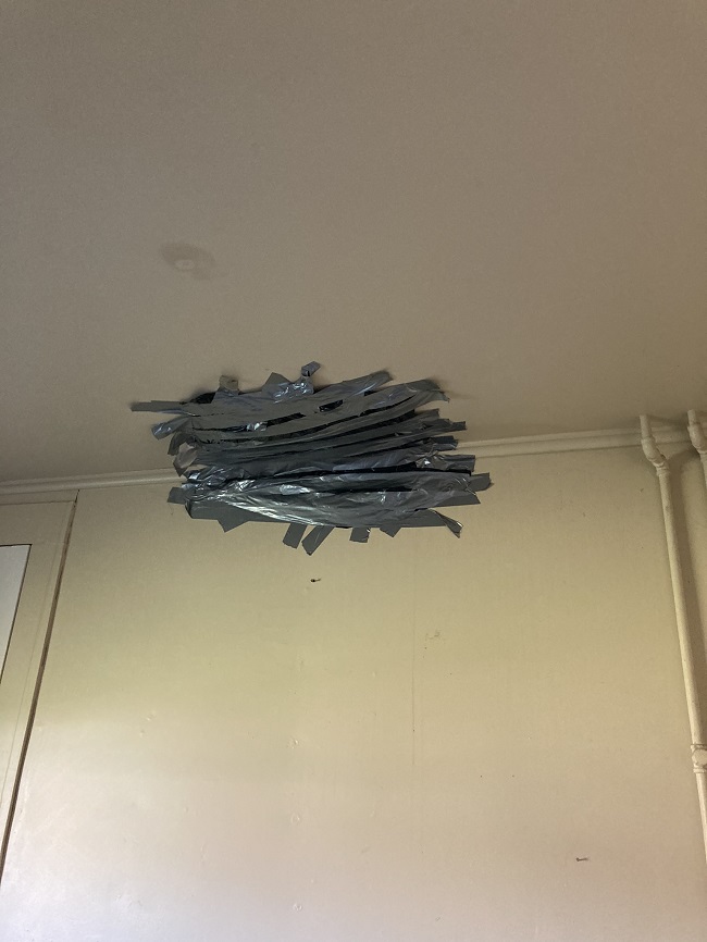 There was recently a leak in your kitchen sealing. You immediately inform the property management’s maintenance team to address the issue, and management sends over a maintenance team member who discovers the problem is from the upstairs neighbor’s bathroom plumbing underneath the sink. A plumber is hired to fix the issue. However, still, there is a possibility that mold is in the kitchen ceiling from the leak, and you insist the property management investigate the matter by a professional. Knowing that a leak in the ceiling can cause mold very quickly, you’re concerned for your family’s safety, especially your two-year-old infant.
